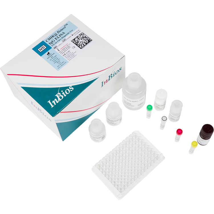 The CHIKjj Detect™ IgG ELISA is designed for the qualitative detection of IgG antibodies present in human serum targeting chikungunya virus E2/E1 proteins.